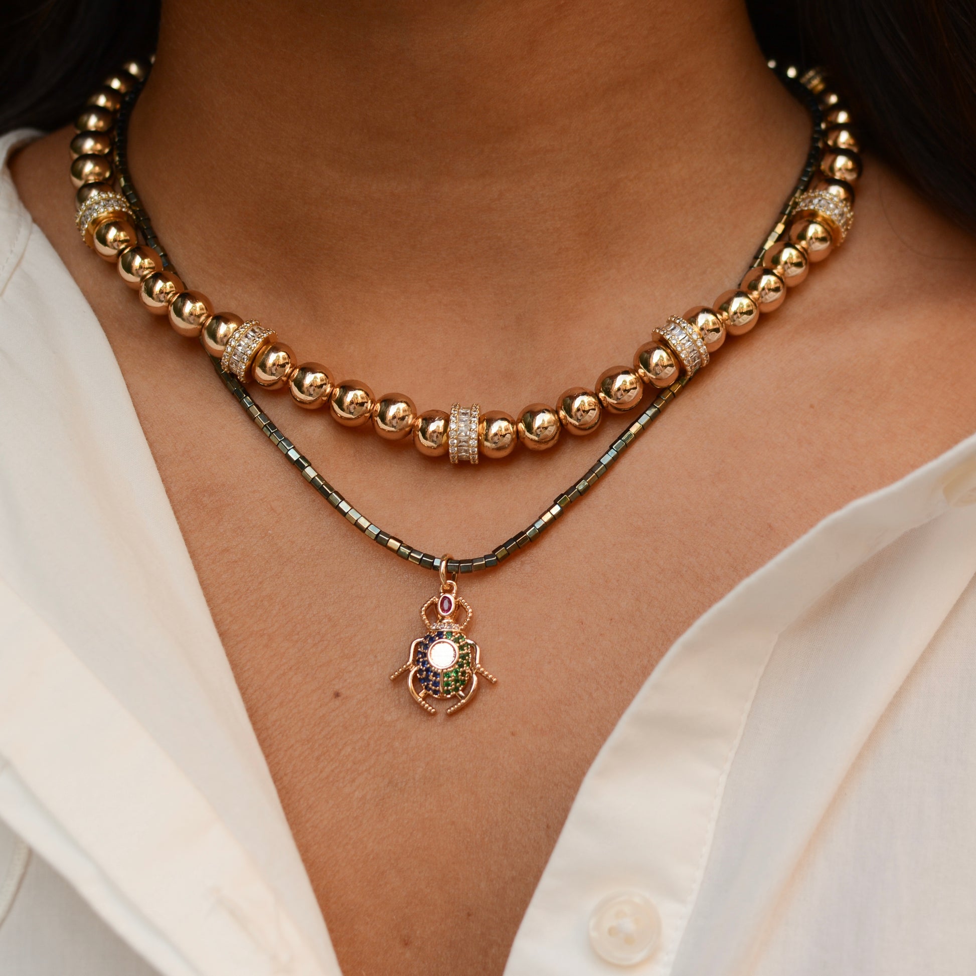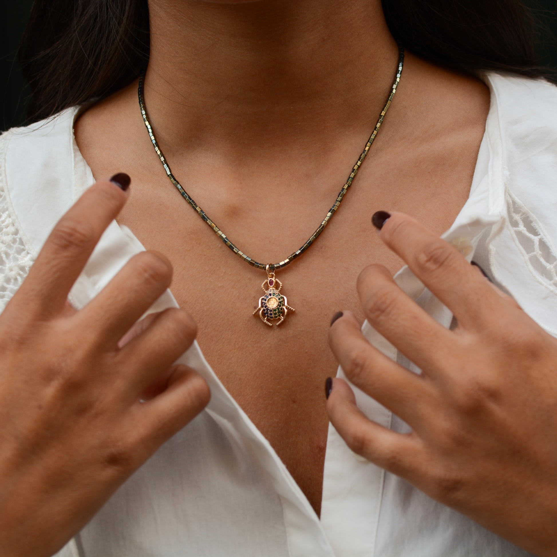 Notre collier Gizeh est une création originale Rose Hill paris. Ce collier est conçu à partir de pierres d’hématite semi précieuses soigneusement sélectionnées pour leur éclat et leur durabilité.
